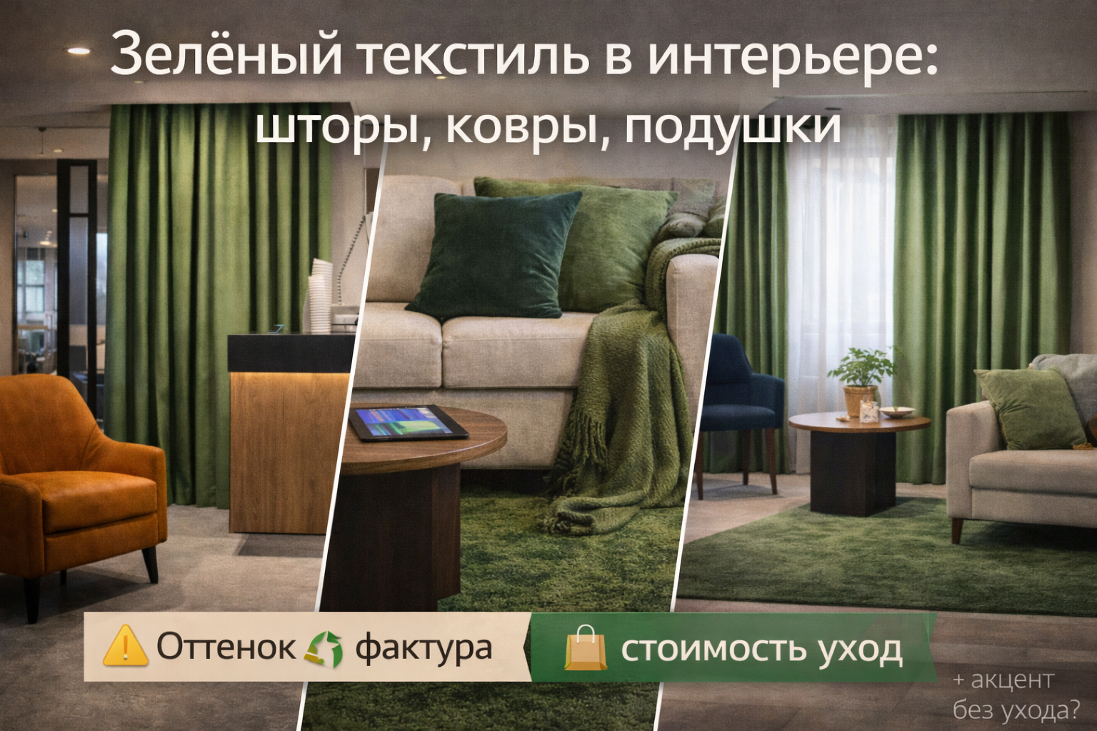 Важно: на ресепшене и во входной группе зелёный текстиль часто воспринимается как “декор”, а не как “зелёный вау”. Если там нужна точка притяжения и премиум-впечатление, лучше добавить природный объект.