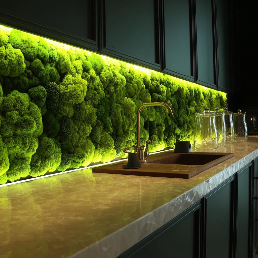 Зелёная стена из растений на кухне: почему это работает