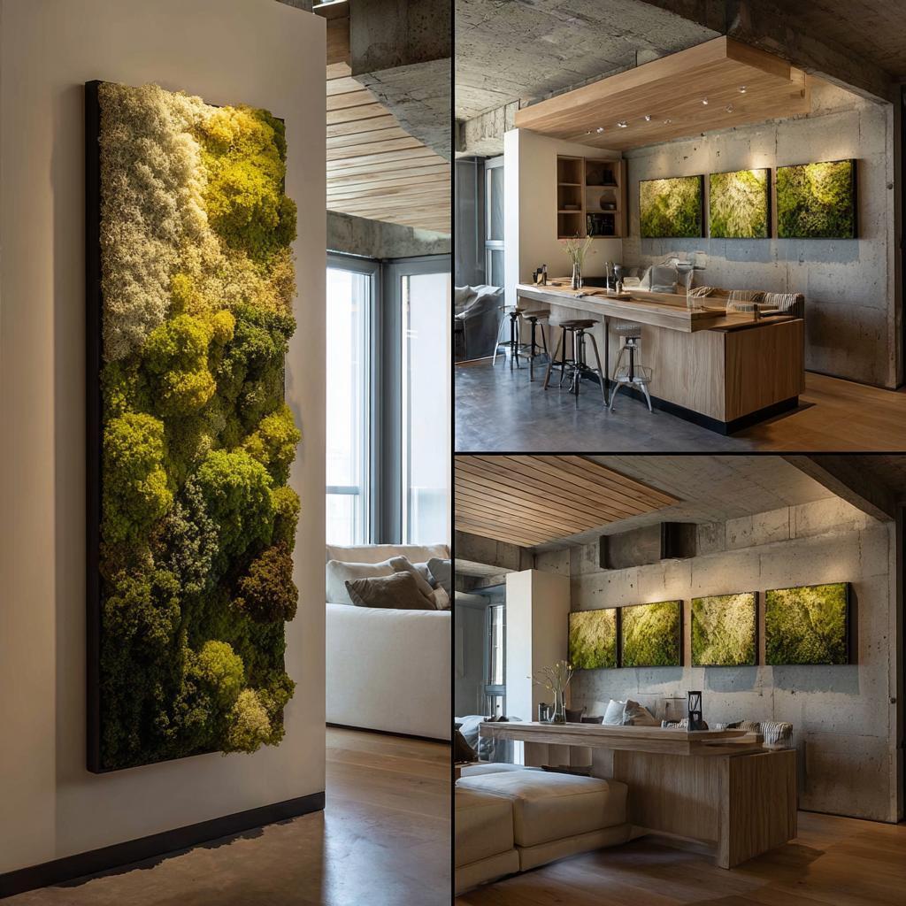 - зелёная стена с частично живыми растениями и стабилизированным мхом;