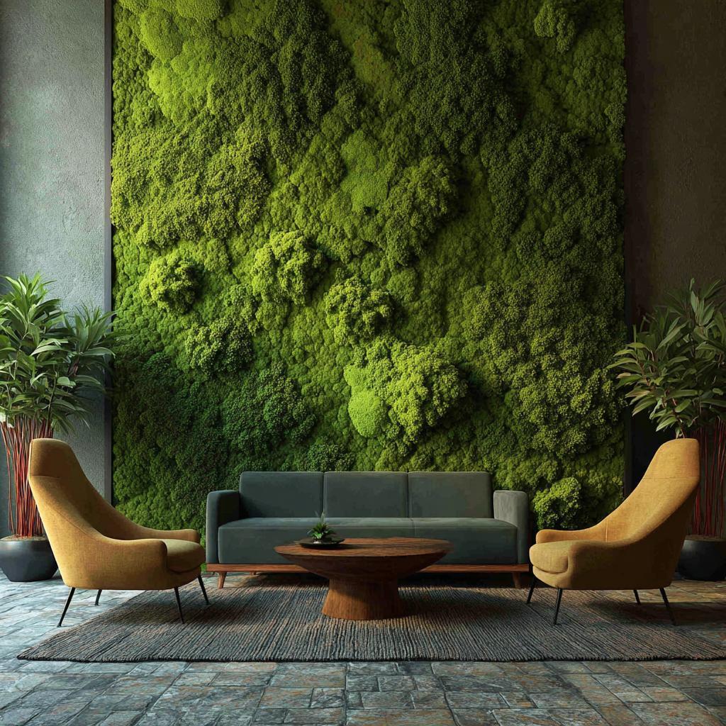 Стабилизированный мох декор сочетает натуральность и практичность, а декоративный мох в интерьере на стену делает пространство стильным, уютным и выразительным.