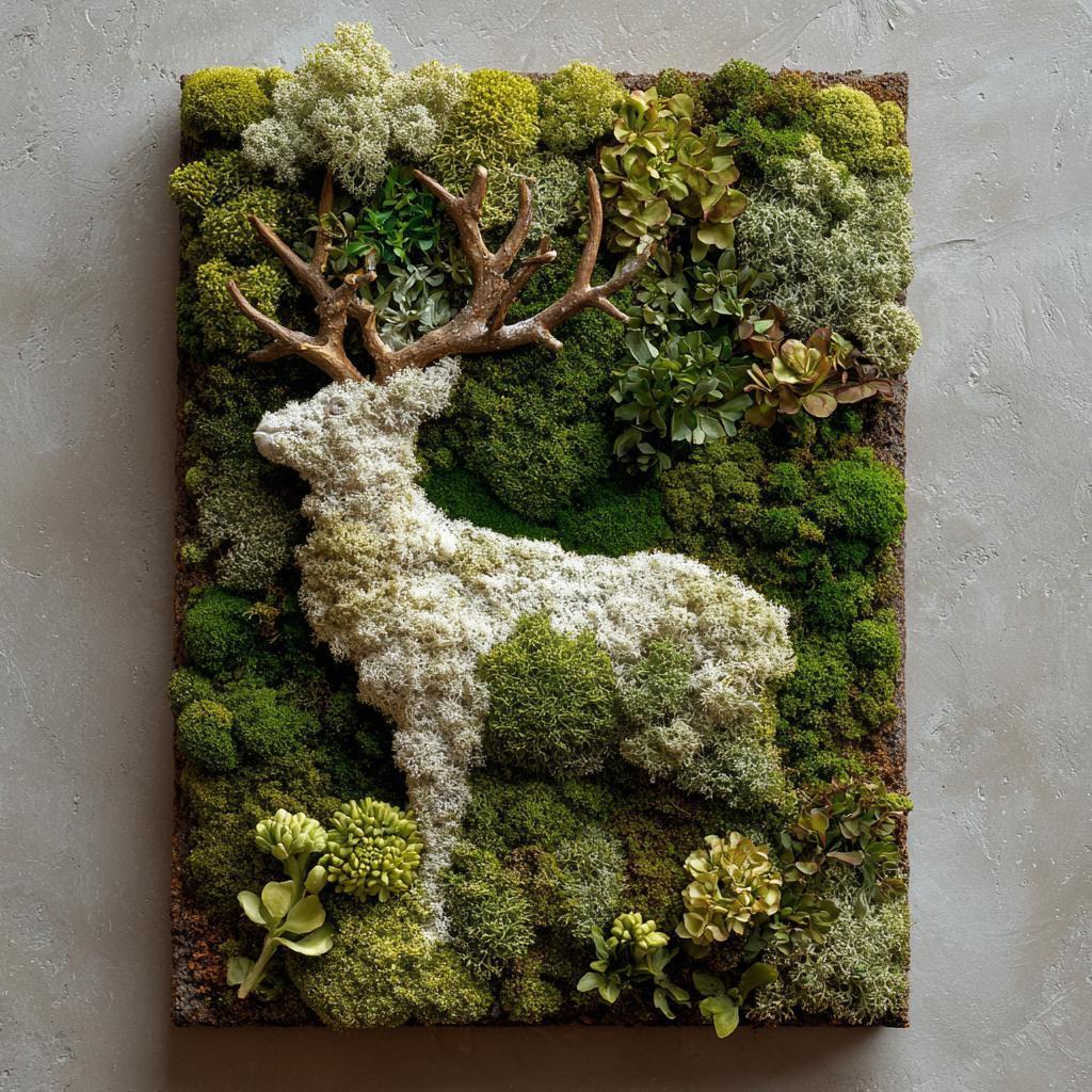 Стена из мха и панно из ягеля