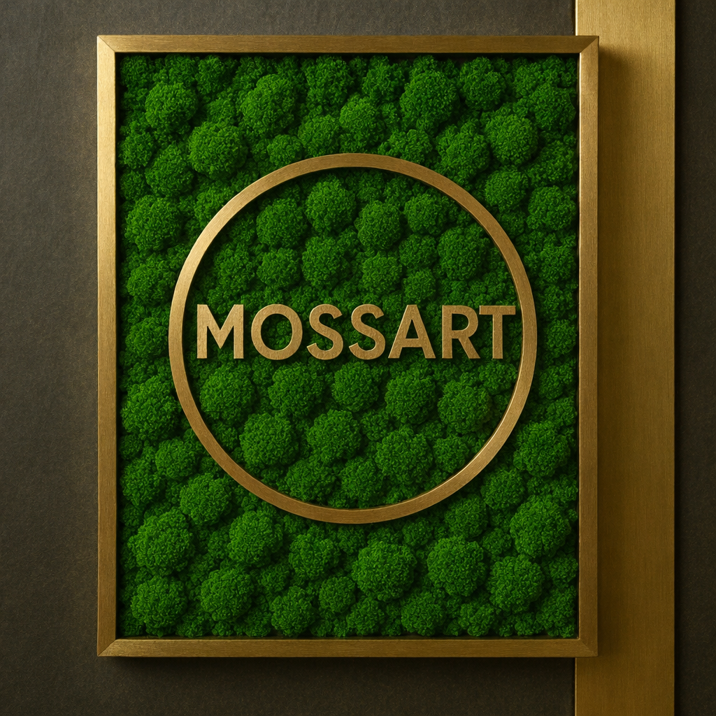 Самый “премиальный” вариант для бизнеса: знак читается с расстояния, а мох добавляет запоминаемость.
