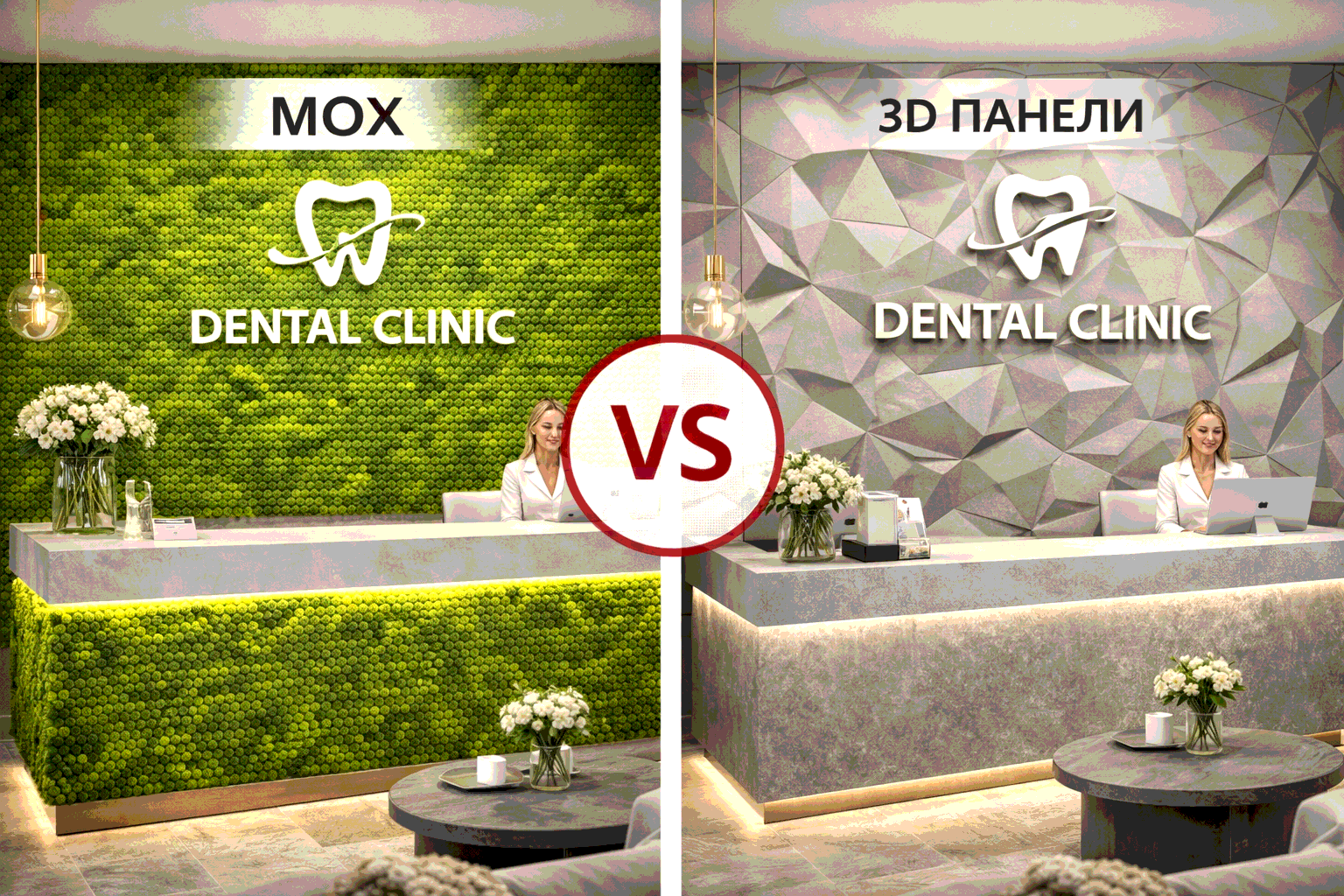 Самое “дорогое” решение: сочетание мха и 3D-панелей