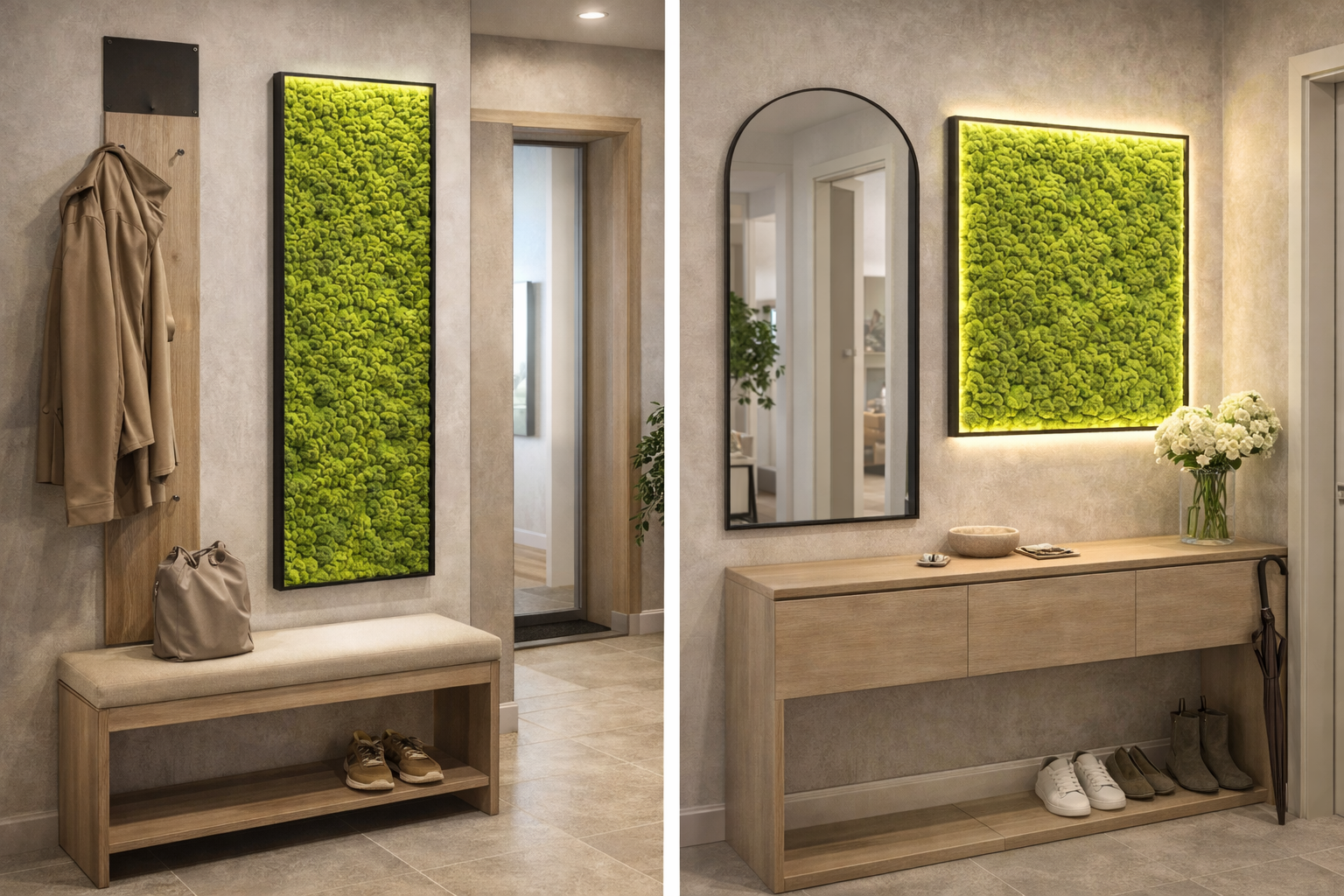 Балкон и лоджия - места, где очень хочется “зелени” и атмосферы, особенно если это зона отдыха или мини-кабинет. Но именно балкон чаще всего является самым рискованным местом для стабилизированного мха: тут бывают сильные перепады температуры, прямое солнце, сквозняки, высокая влажность или, наоборот, пересушивание.
