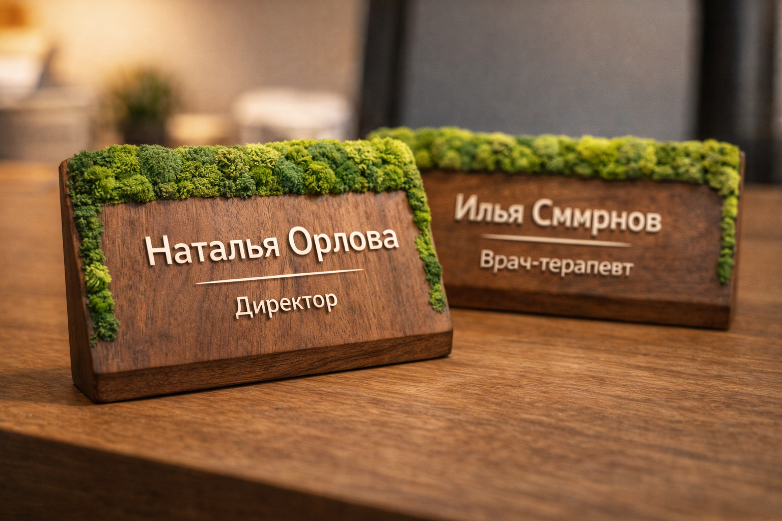 Именные таблички нужны там, где важны доверие и порядок: в клинике, офисе, салоне, учебном центре, отеле. Когда на двери или на столе стоит аккуратная табличка с именем и должностью, человек чувствует уверенность: “здесь всё организовано”, “я попал по адресу”, “со мной работают профессионально”.