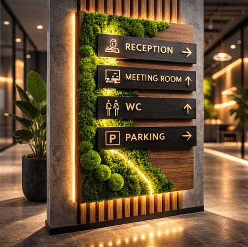 Хорошая навигация экономит время и нервы: посетитель уверенно идёт по маршруту, персонал меньше отвечает на “а где у вас…”, а пространство выглядит собранным. Но типовые пластиковые указатели часто выбиваются из интерьера и визуально “удешевляют” объект - особенно в клиниках, салонах, офисах и отелях.