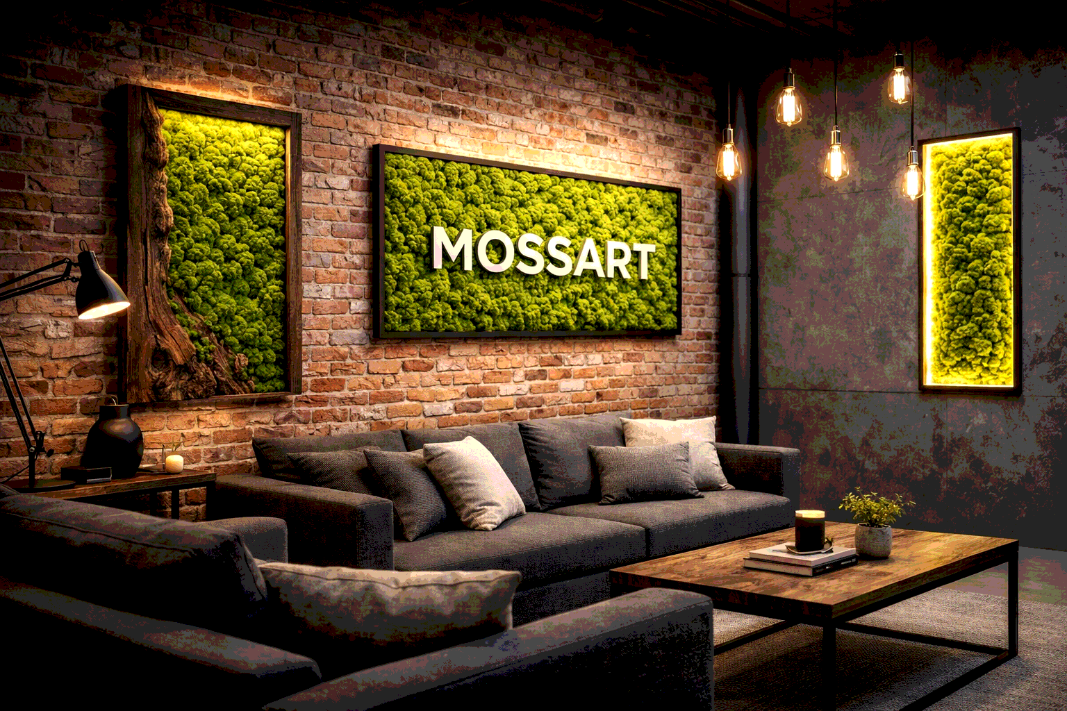 Лофт строится на честных материалах: кирпич, бетон, металл, открытая инженерия. Это выглядит мощно и характерно, но иногда слишком жёстко и “холодно”. Стабилизированный мох - идеальный контраст: он добавляет мягкий зелёный объём, делает пространство дружелюбнее и заметно повышает “вау-эффект”.