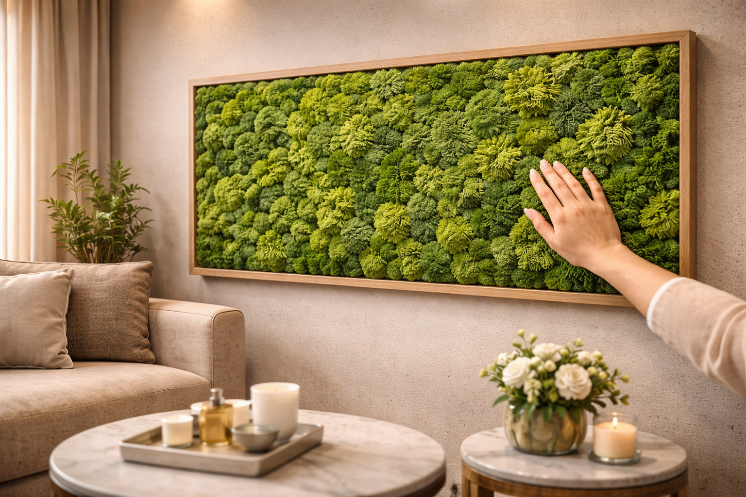 Пришлите фото зоны ожидания и примерный размер панели - мы предложим 2–3 варианта формы и размещения, подберём палитру мха и подготовим фотореалистичный эскиз.