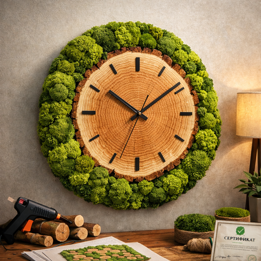 Часы из дерева со стабилизированным мхом - это редкий формат, где полезная вещь становится интерьерным акцентом. Вы получаете не просто часы “чтобы показывали время”, а тёплый природный арт-объект: дерево задаёт статус и фактуру, мох добавляет объём и зелёный вау-эффект. Такие часы хорошо смотрятся и дома, и в бизнес-пространствах - там, где важны первое впечатление и стабильная красивая картинка без обслуживания.
