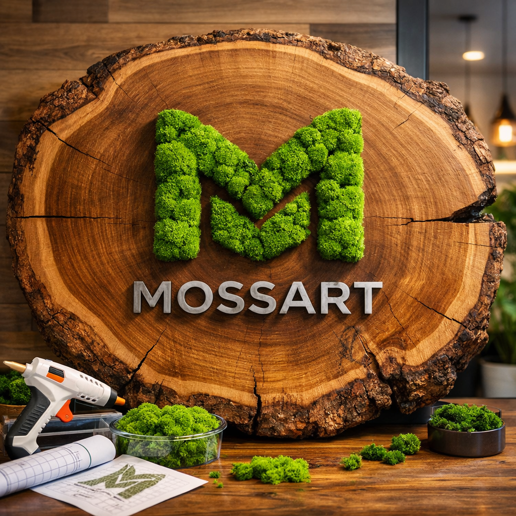 Логотип на деревянном слэбе с мхом - это не просто вывеска. Это интерьерный арт-объект, который сразу задаёт уровень: натуральное дерево, объёмная фактура мха и “ручная” уникальность слэба читаются как премиум с первого взгляда. Такой логотип идеально работает там, где важны первое впечатление, фото/сторис и доверие: ресепшен, входная зона, переговорная, шоурум, бренд-зона.