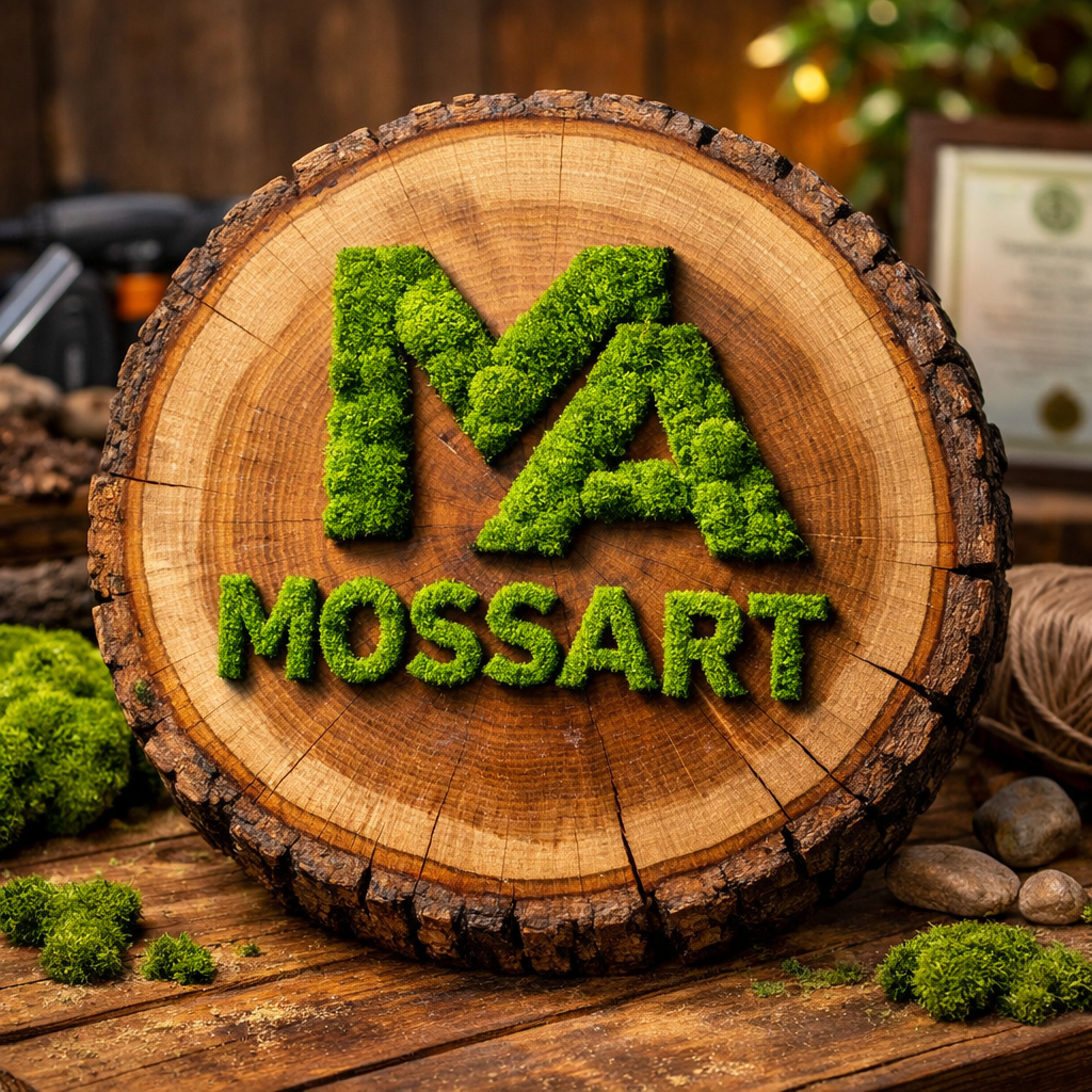 На фото и видео круглый спил читается сразу, а фактура мха делает знак “объёмным” и запоминающимся - это работает на сторис и отзывы.
